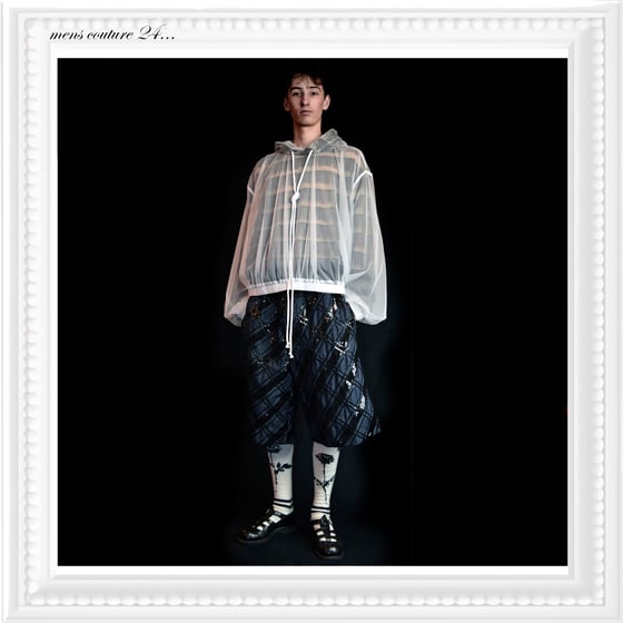 MENS COUTURE 24 - 3-layer tulle/fringe hoodie.